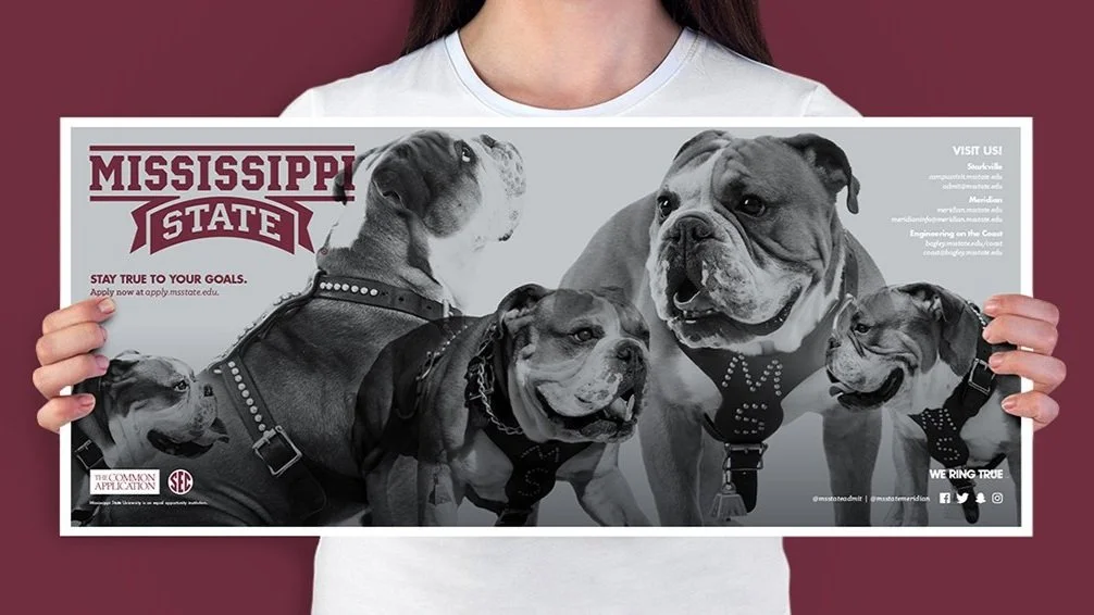 Here are just a few examples of the recruitment materials we’ve developed for Mississippi State University. Our work played a key role in helping MSU achieve seven consecutive years of enrollment growth, including their highest summer enrollment on record.