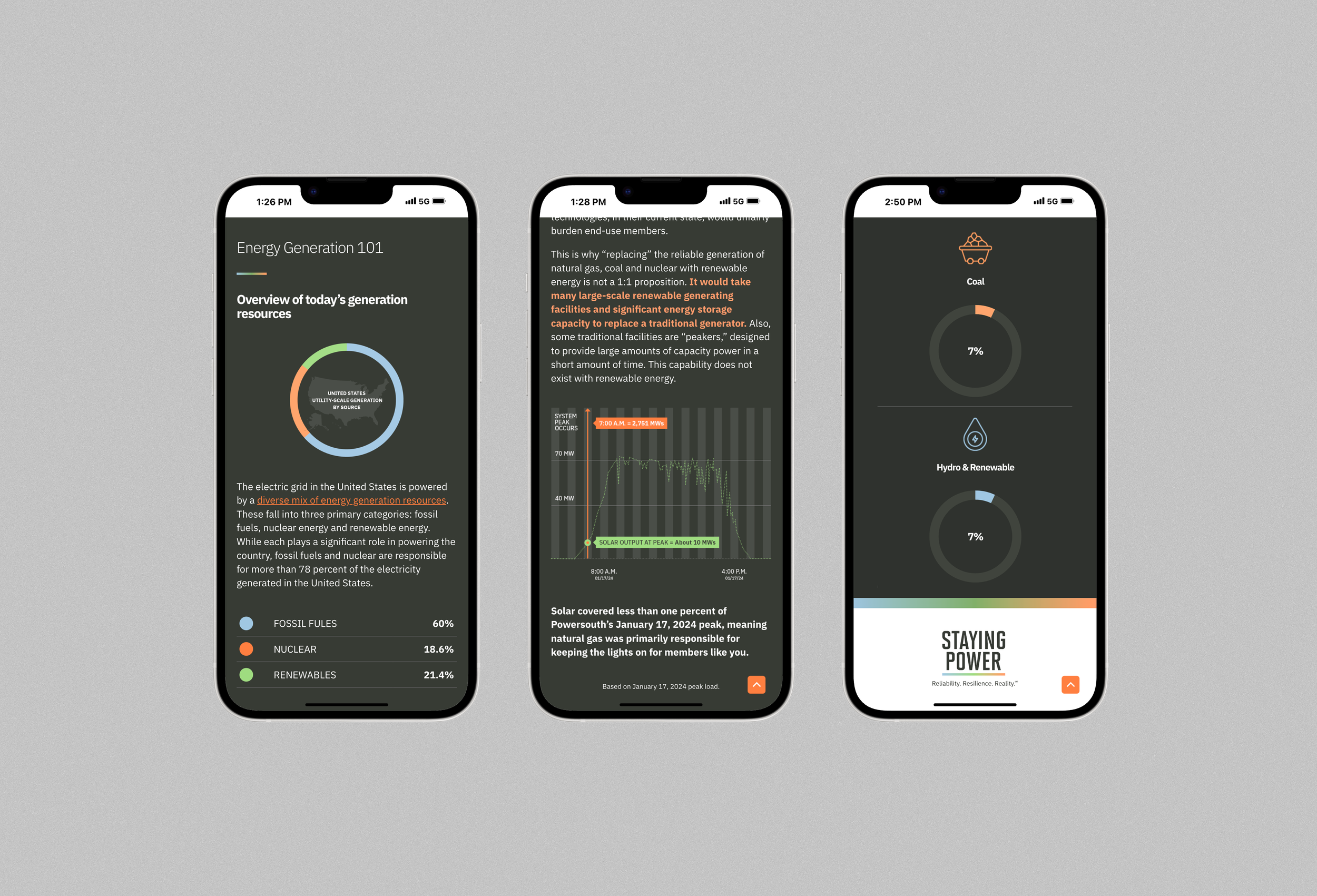 PowerSouth brought in the Ad5 team to create an information campaign to increase awareness of the challenges facing the industry, and how those challenges ultimately impact the customer. More important, it empowered customers by giving them the knowledge they need to effectively voice their support for common-sense energy practices.